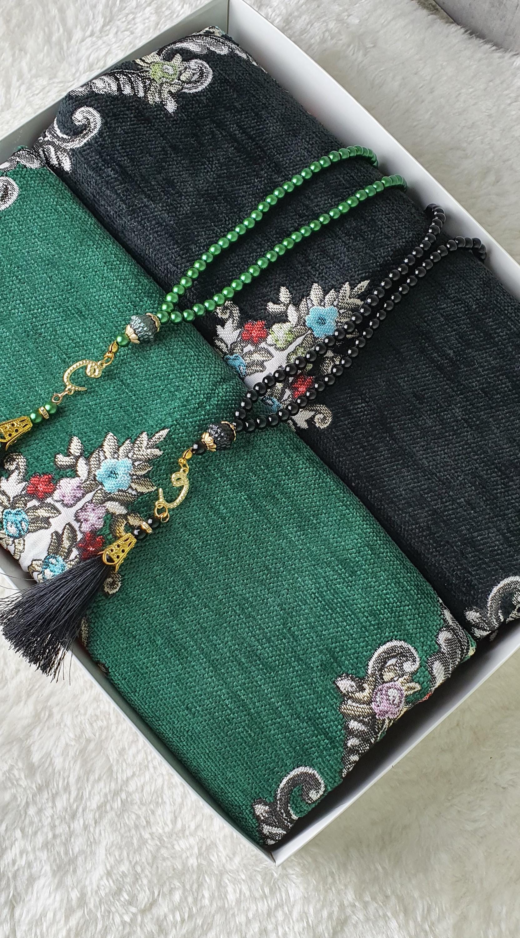 Couples Prayer Islamic Gift, Sets of Two Prayer mats 2 Tasbehs, Wedding Sejadah gift Bride, Bridemaids gift, Hajj, Umrah Eid Quran Salah