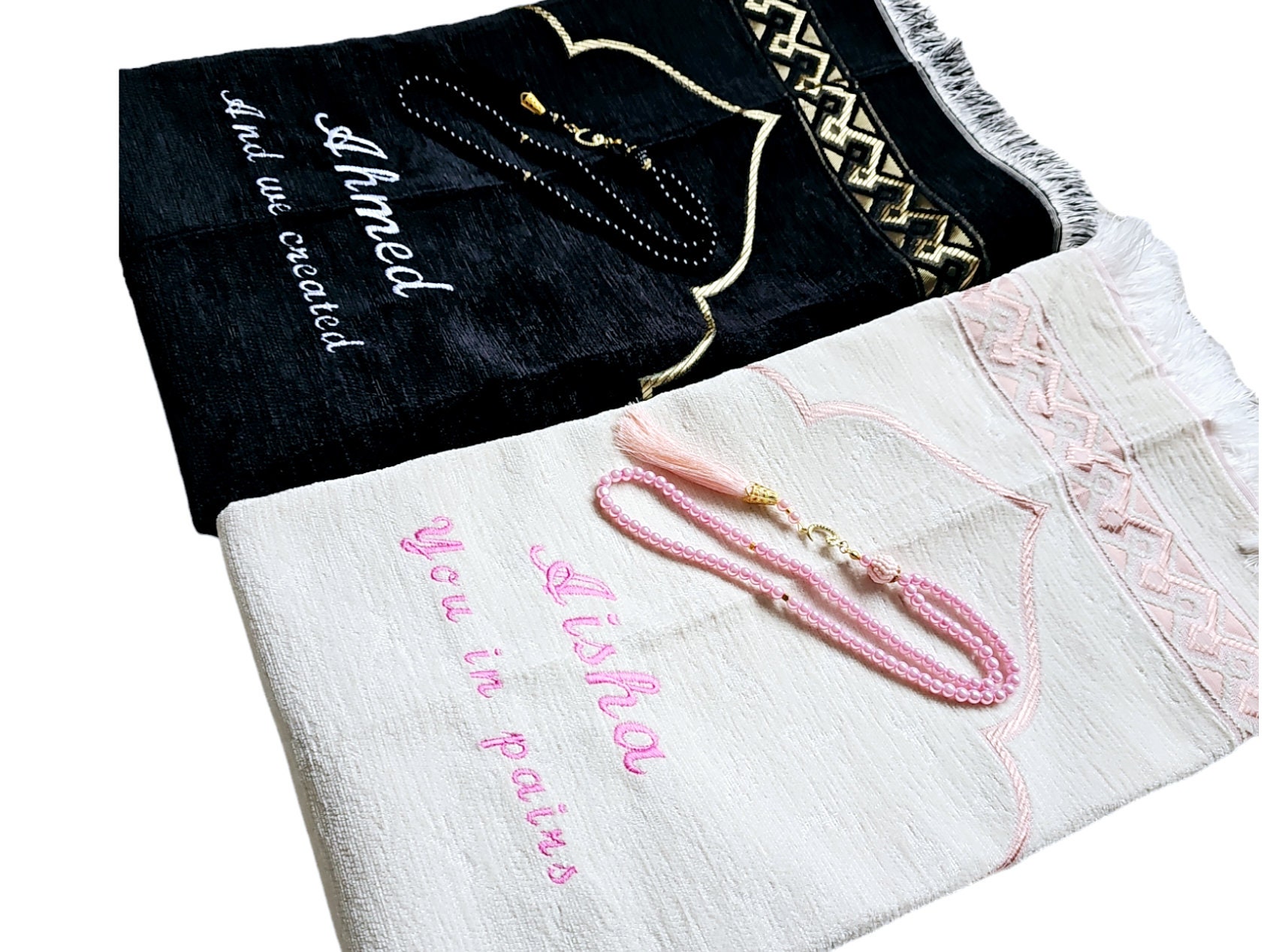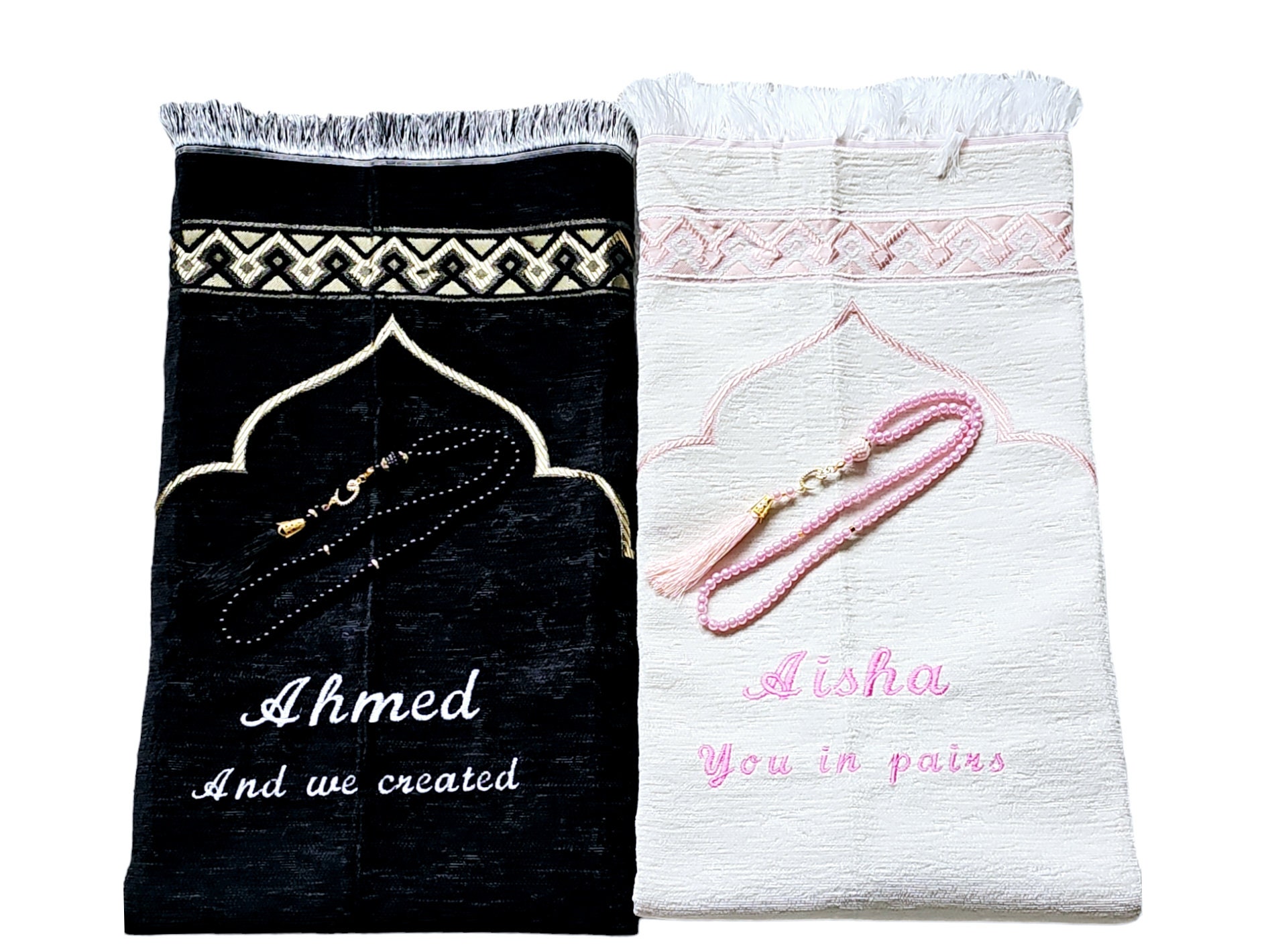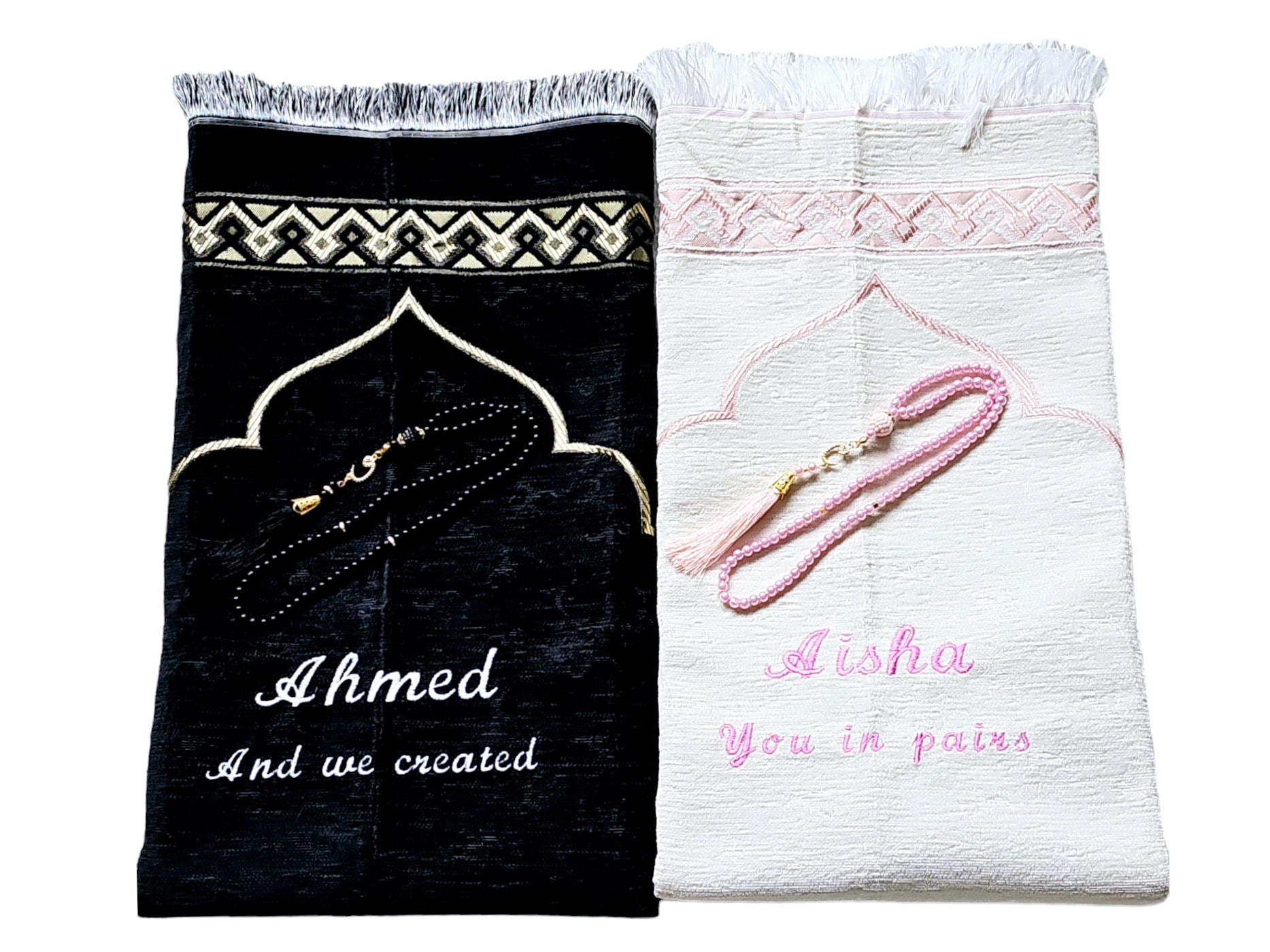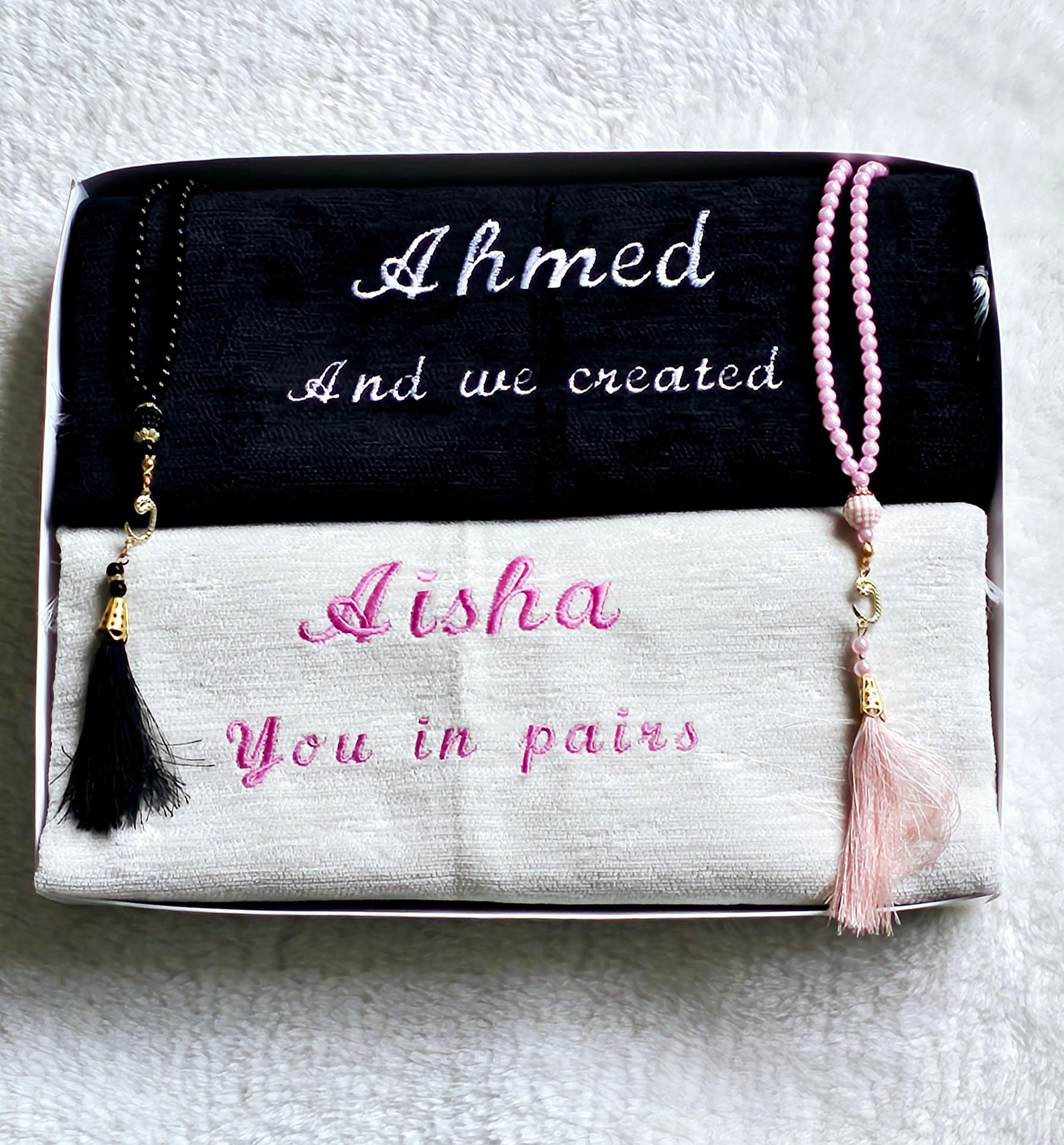 Couple Prayer Islamic Gift | Personalizing Salah | Sejadah Bride Wedding Gift | Customising Couples Set | Nikaah Anniversary Prayer Salah