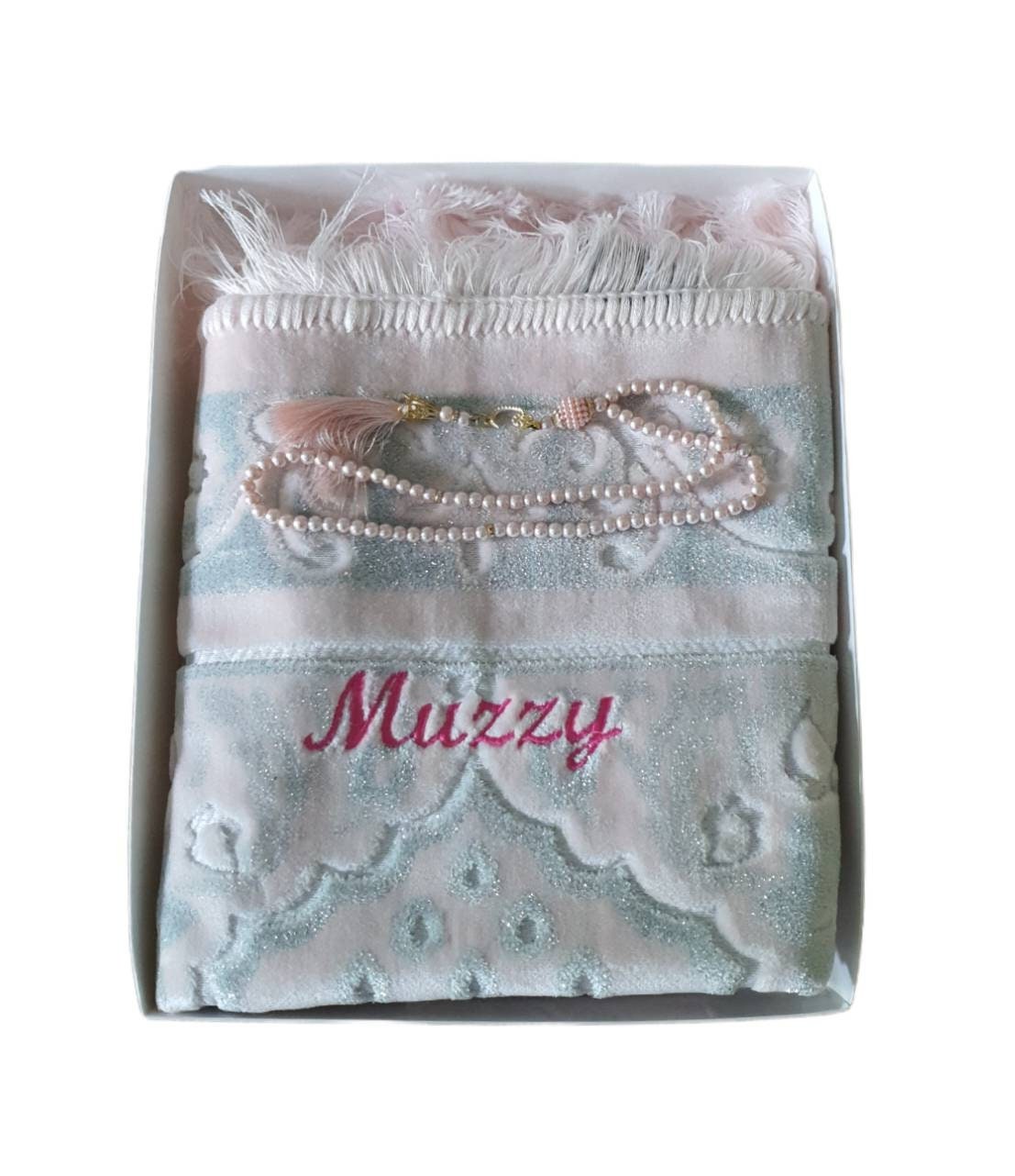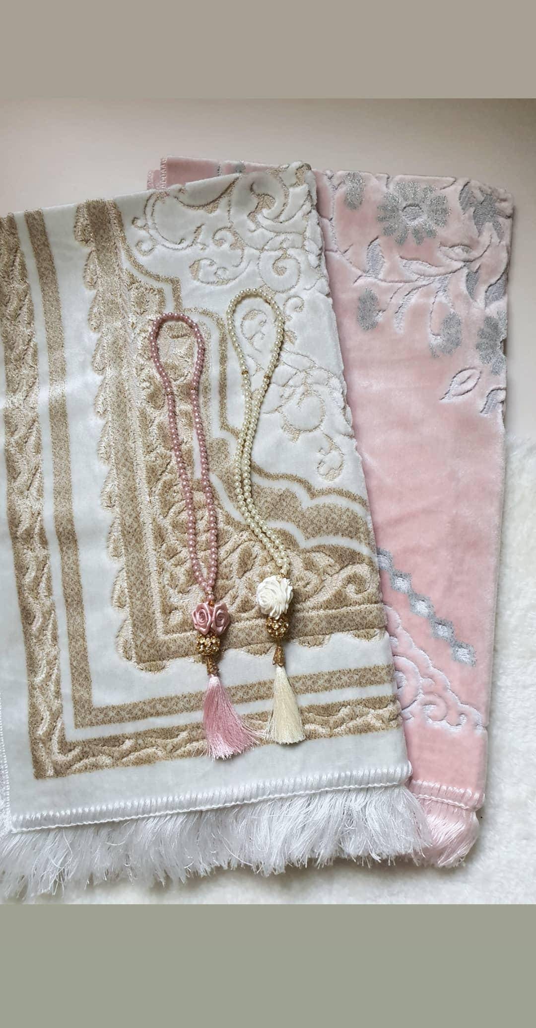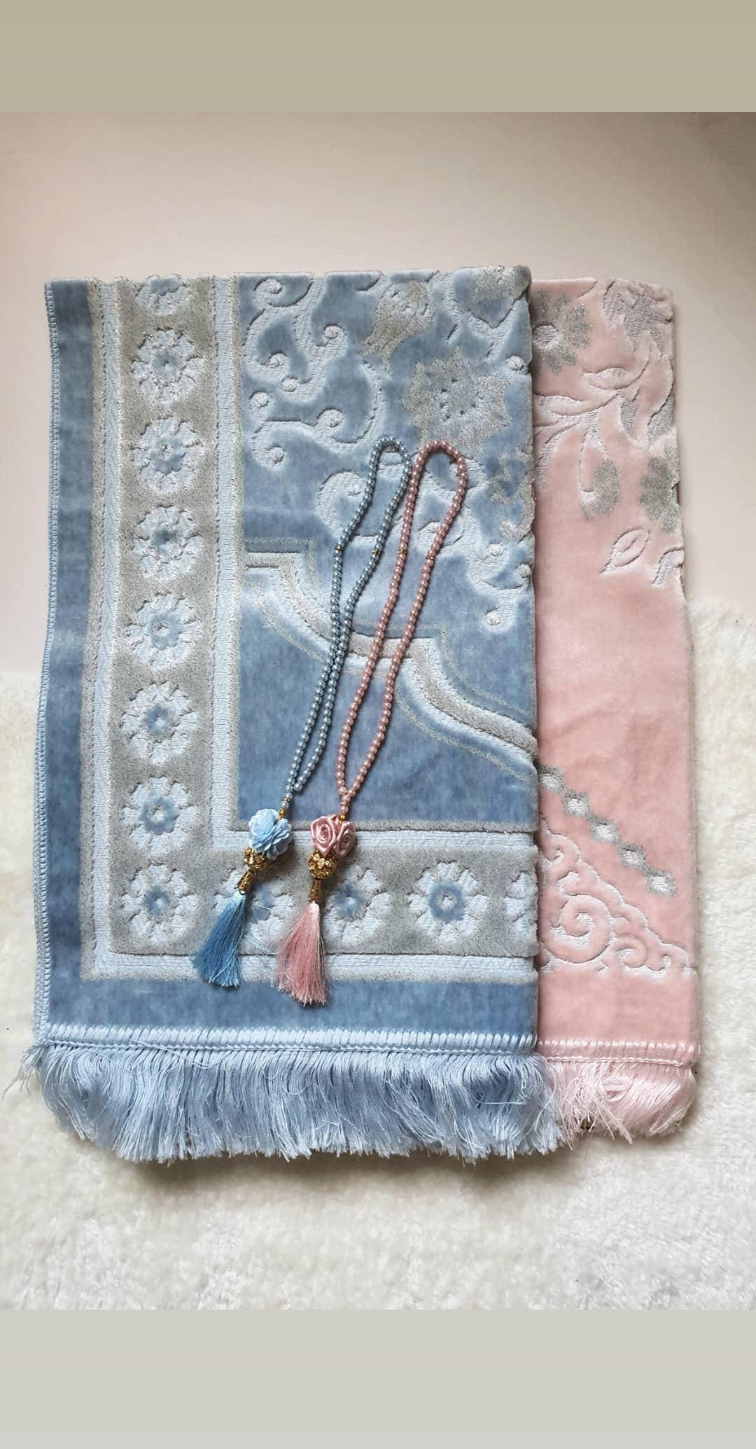 Couples Customized Thick Prayer rug + Tasbeeh Set | Islamic Gift for Eid Anniversary Nikaah Ramadan,Aaliyah gifts | Personalized Couples set