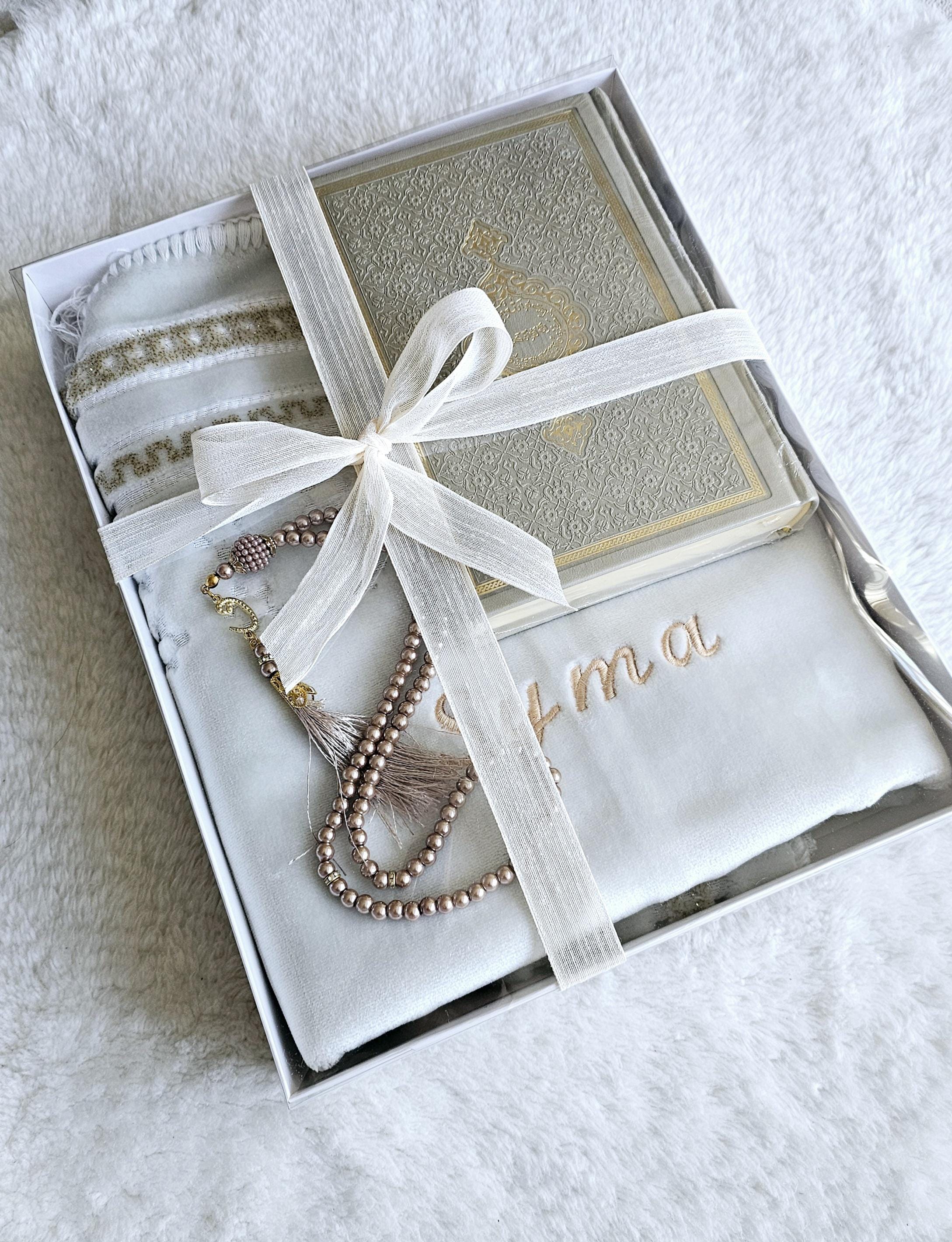 Customized Prayer Rug with Quran Tasbeh Islamic Muslim Gift Ramadan Eid Mubarak gift Prayer Mat with name,Personalised Sejadah Seccade gift