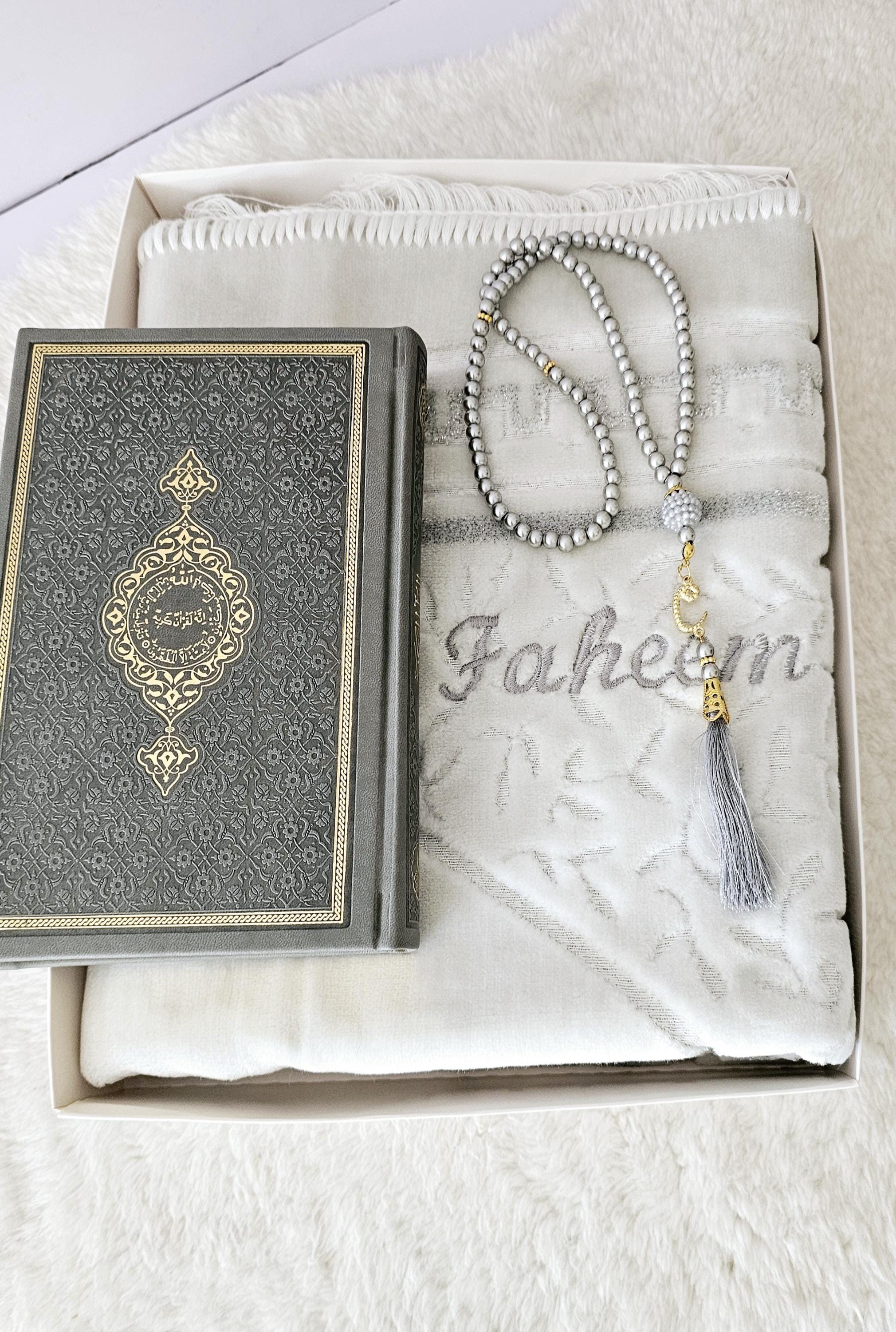 Customized Prayer Rug with Quran Tasbeh Islamic Muslim Gift Ramadan Eid Mubarak gift Prayer Mat with name,Personalised Sejadah Seccade gift