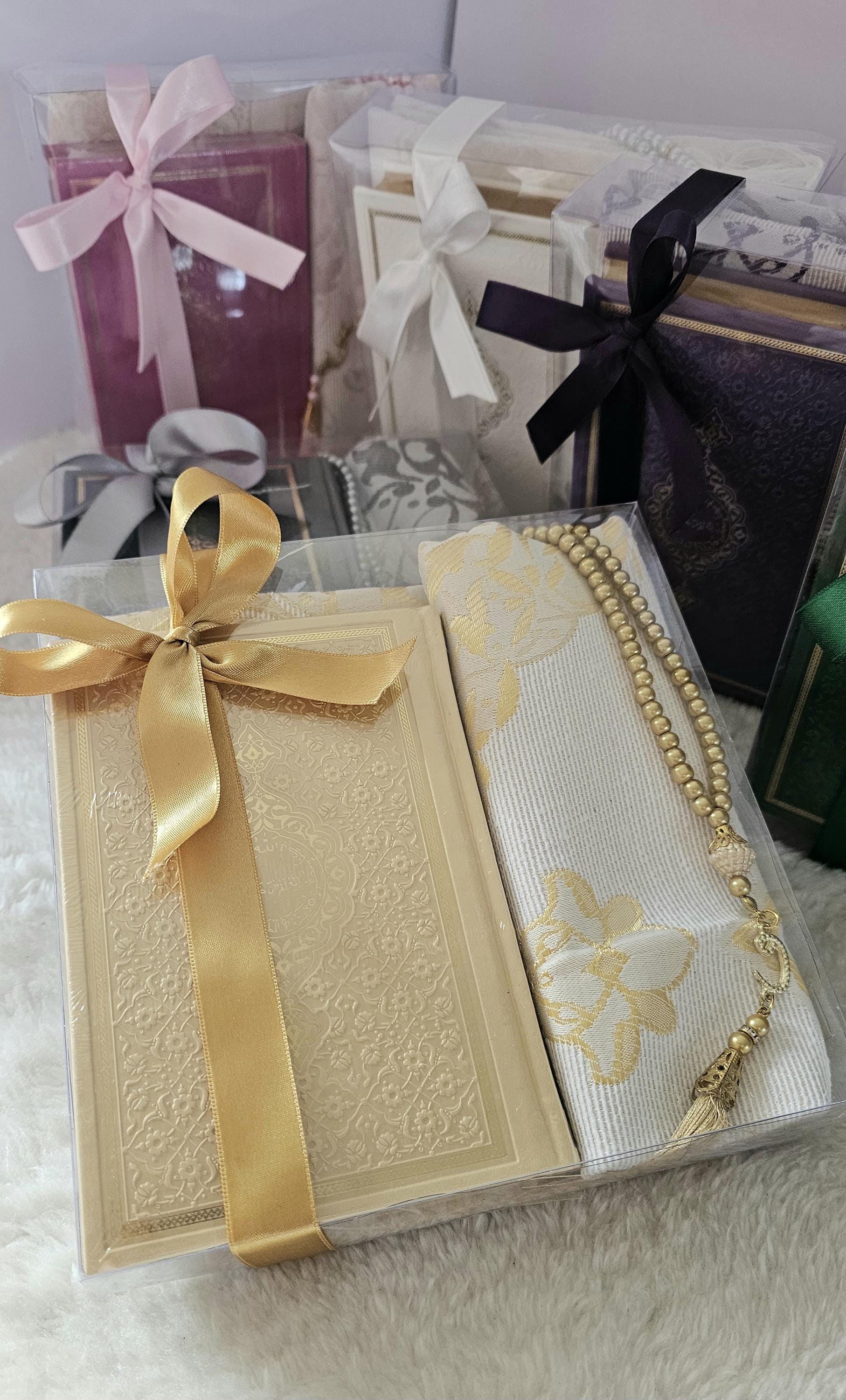 Engraved Wedding Quran Gift Set Islamic Muslim Religious Book Islamic Eid Hajj Umrah Prayer Rug, Anniversary, Best man gift, Father of Groom