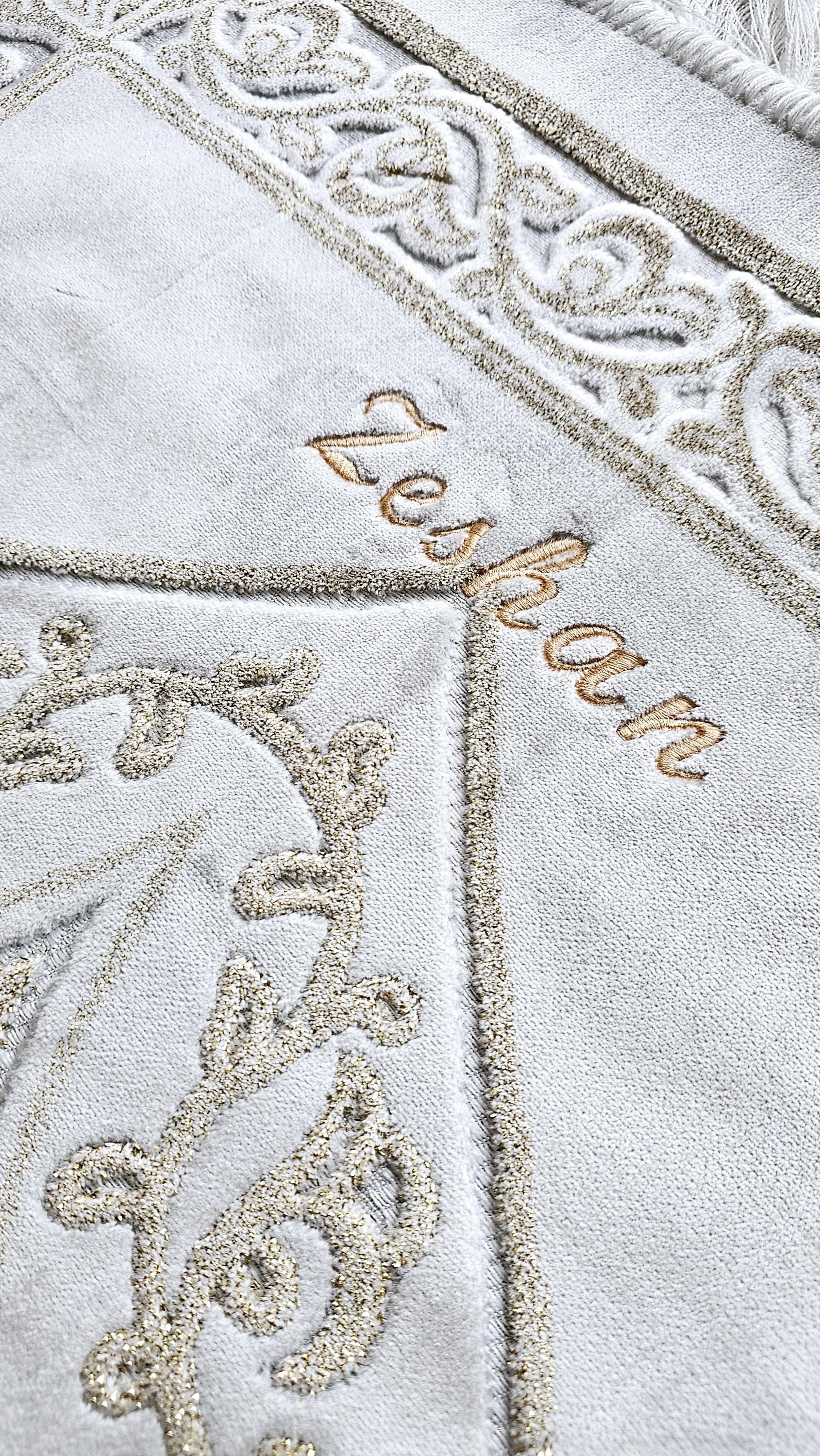 Customized Prayer Rug with Quran Tasbeh Islamic Muslim Gift Ramadan Eid Mubarak gift Prayer Mat with name,Personalised Sejadah Seccade gift