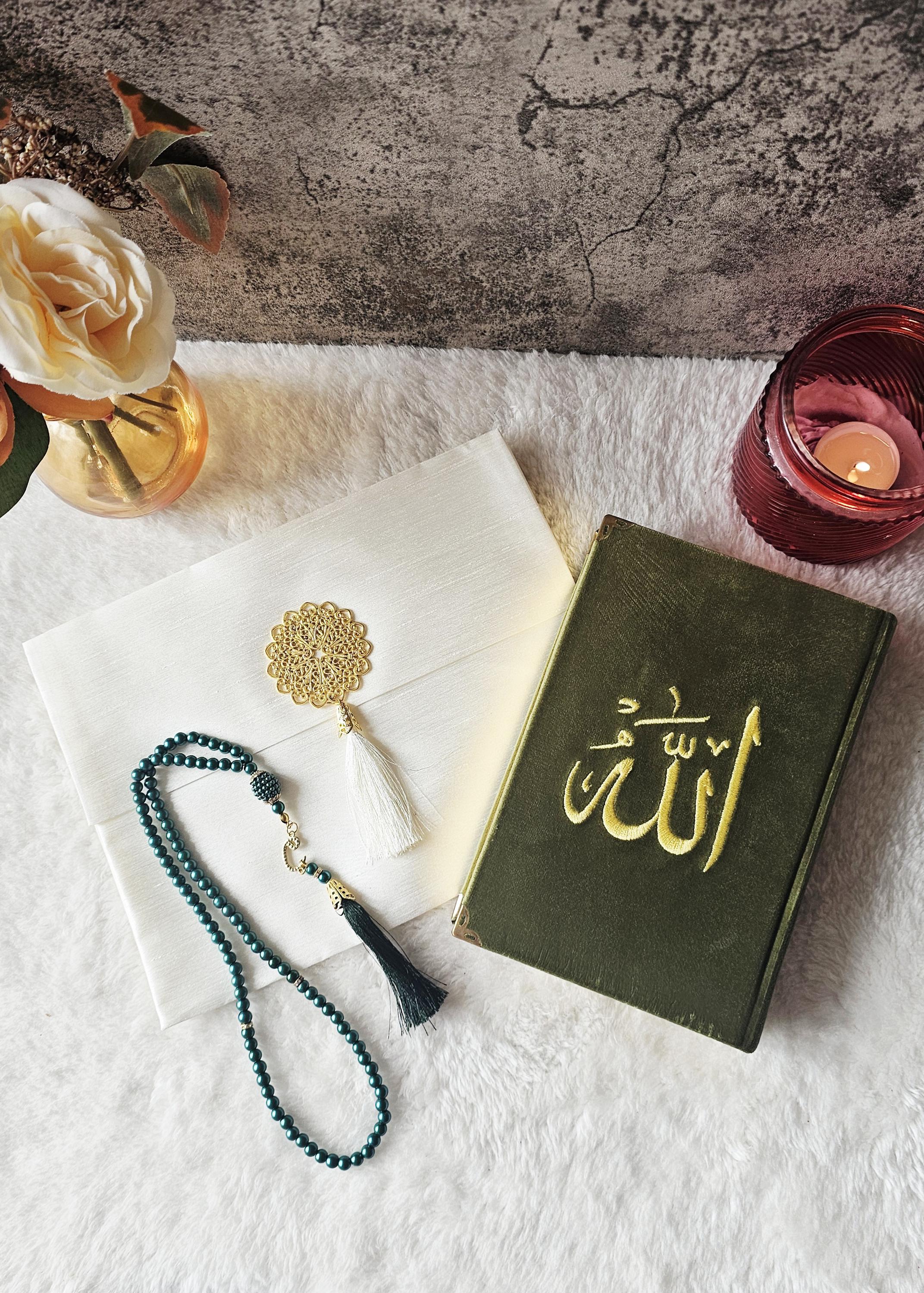 Velvet Qur'an Al-Kareem | Holy Quran Book | Arabiq Language Uthmani Script Kuran, Best Father's Gift for him | Salah Gift, Muslim Quran Book, Holy Quran Book Uthmani Script -Arabic Text Mushaf
