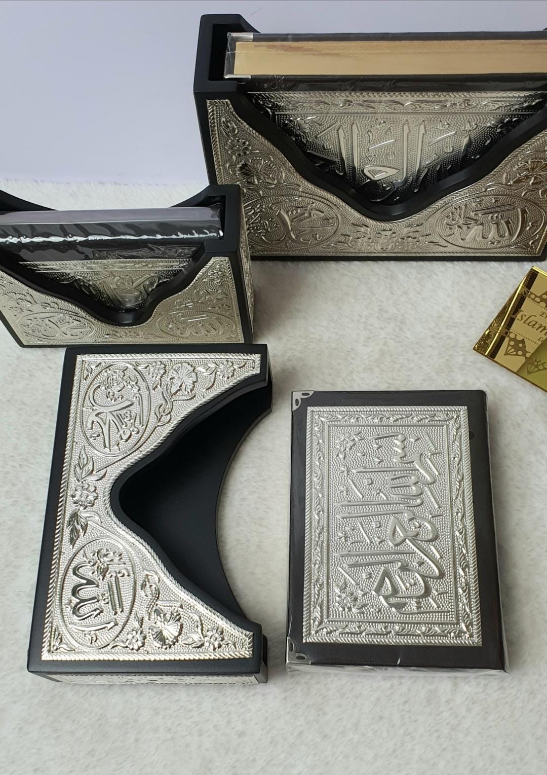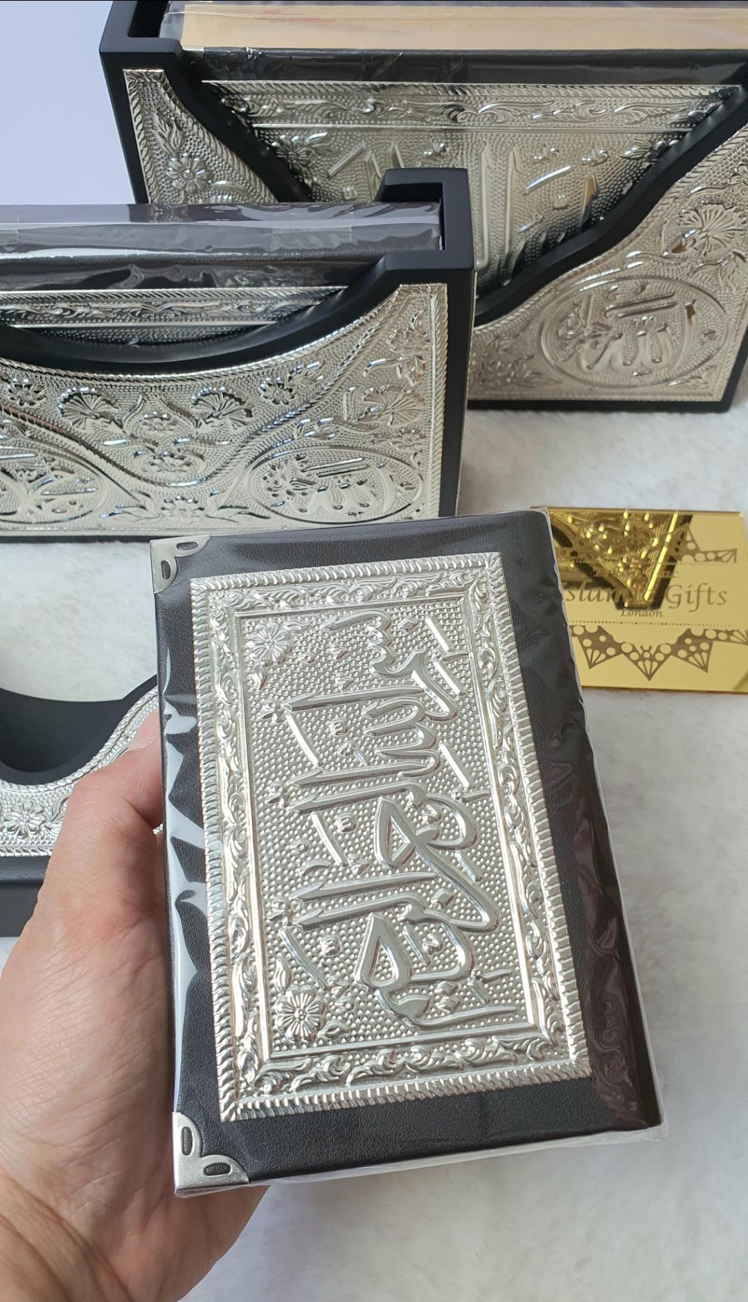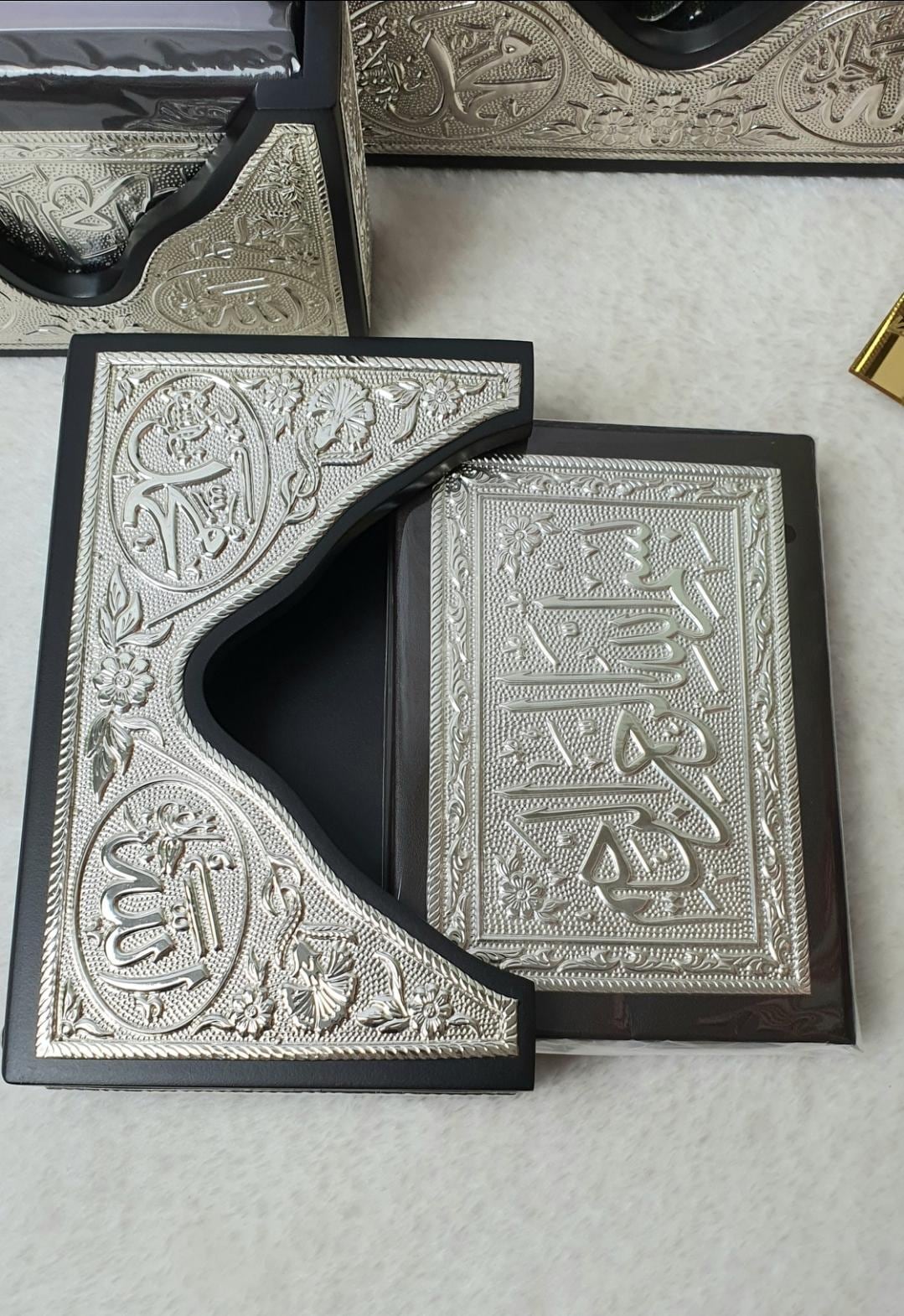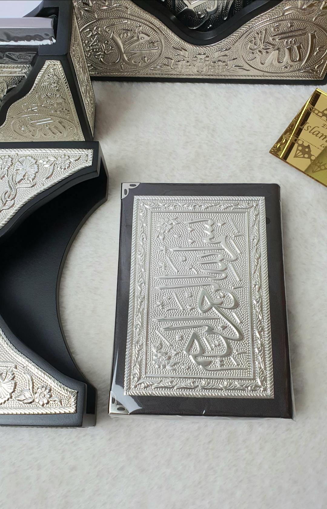 Black Silver color Plated Qur'an With Wooden Box | Quran | Holy Book | Islamic Wedding | Qur'an al-Kareem | Nikaah Gift | Graduation Gift |