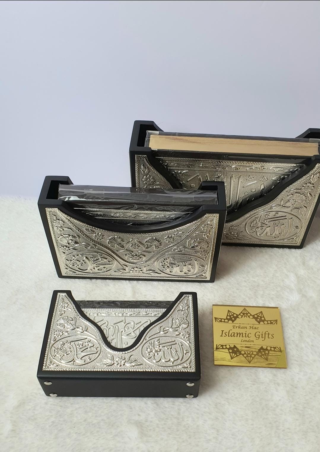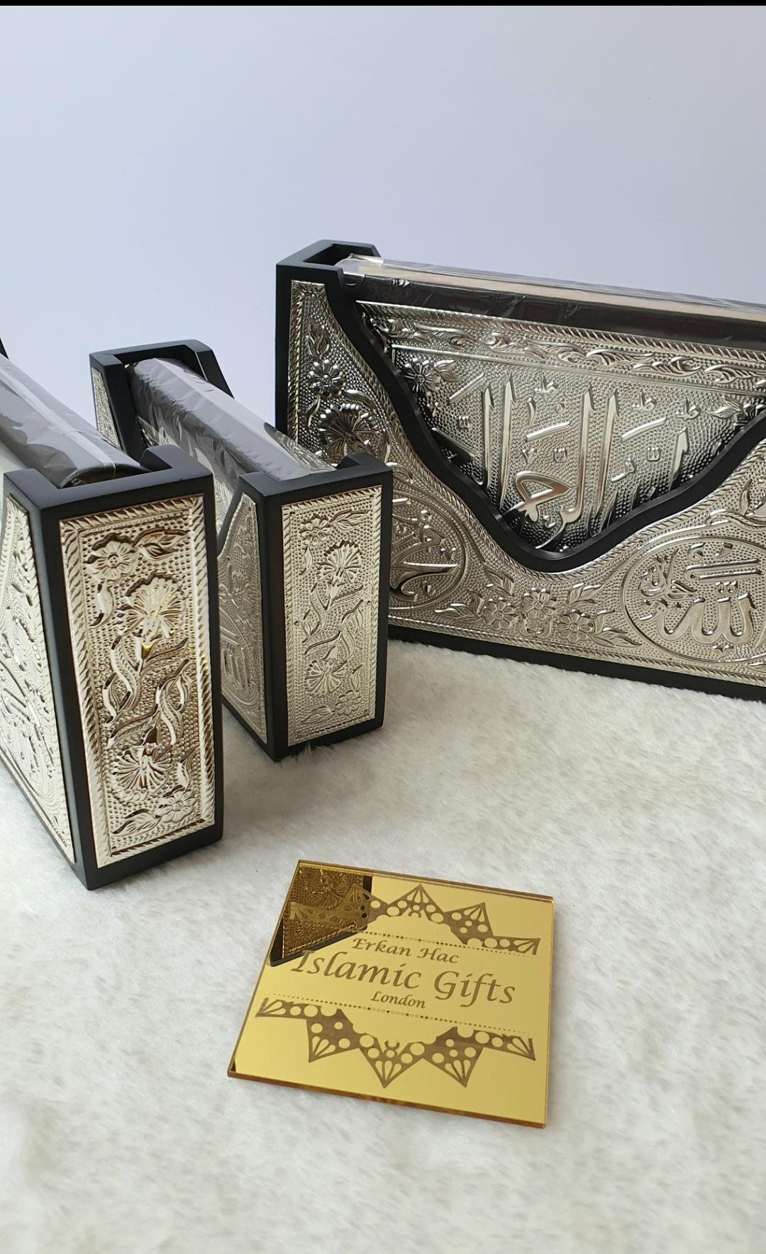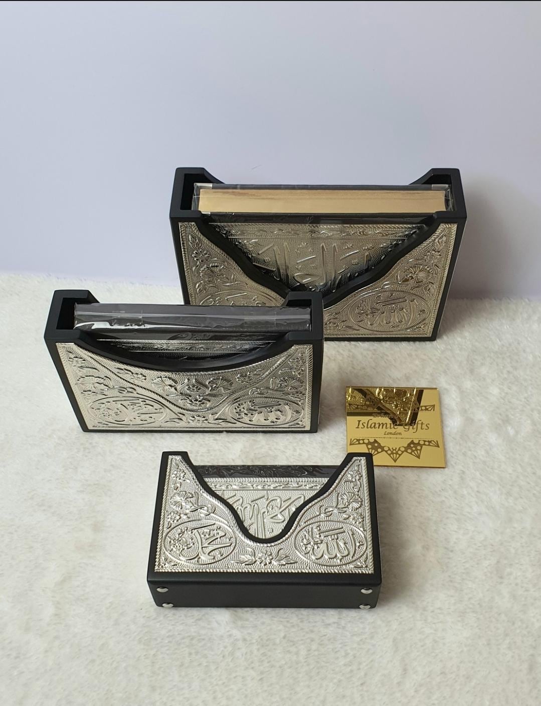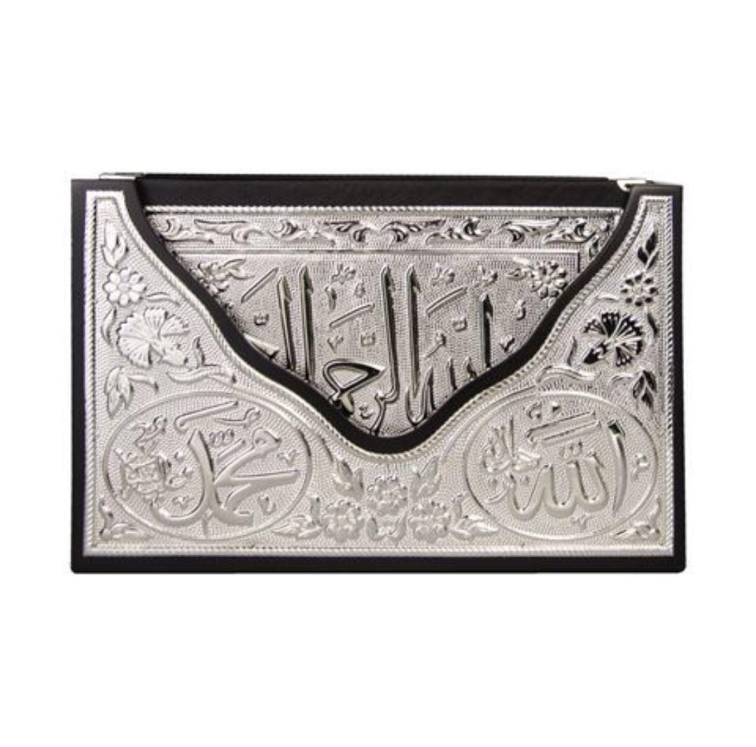Black Silver color Plated Qur'an With Wooden Box | Quran | Holy Book | Islamic Wedding | Qur'an al-Kareem | Nikaah Gift | Graduation Gift |