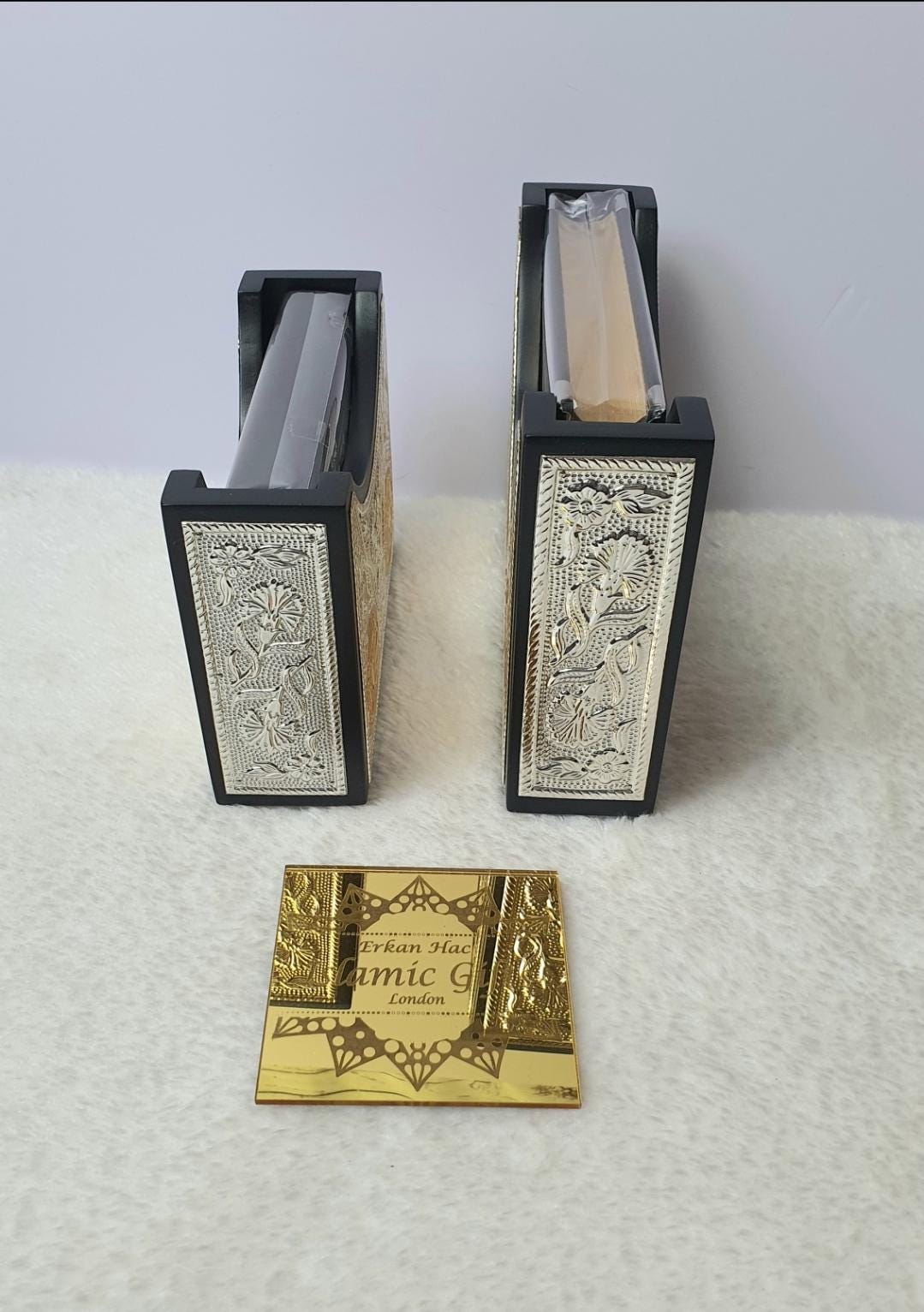 ●Quran Cover: Faux Leather and top of that Black- Silver Nickel mixed.
