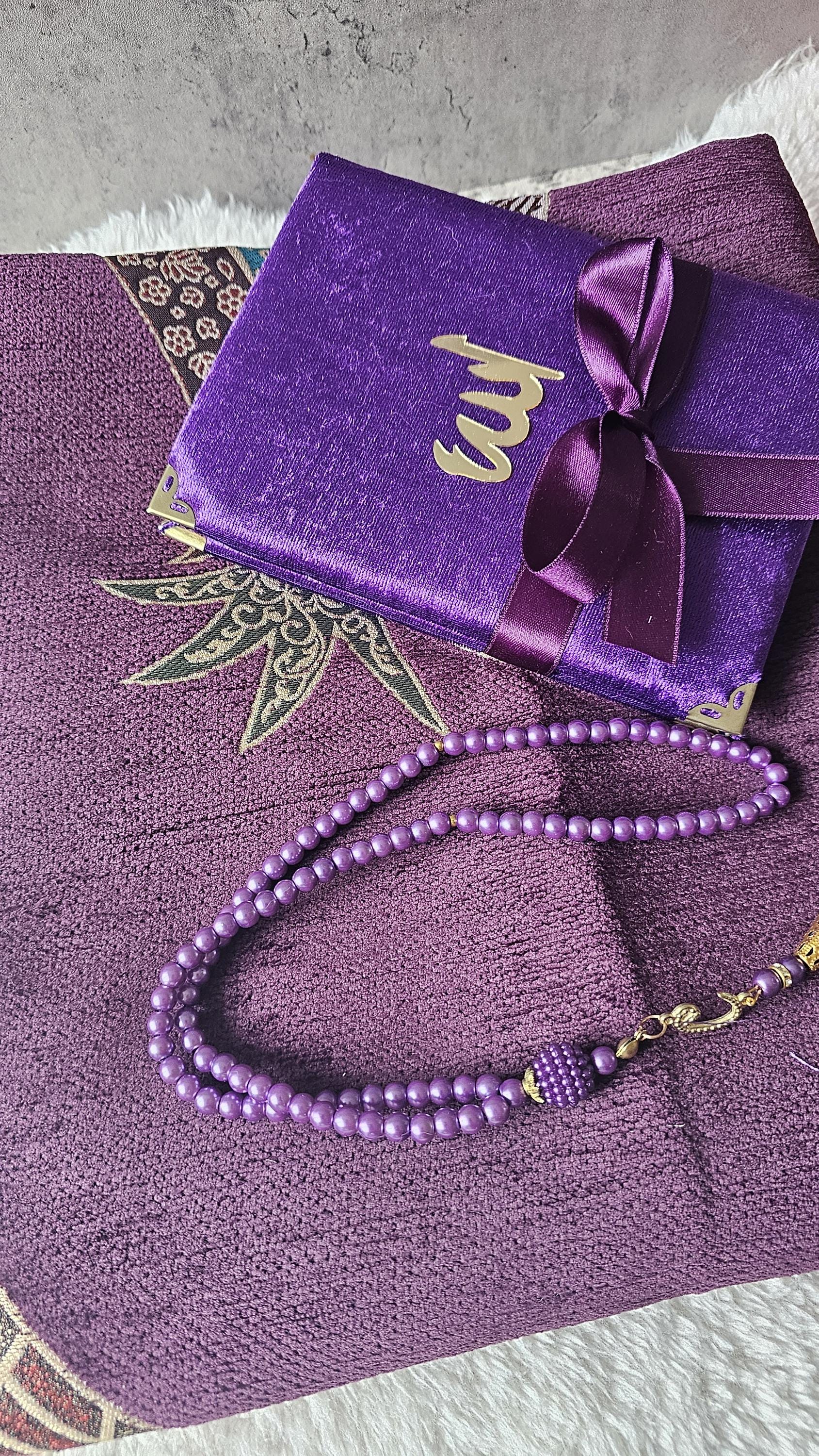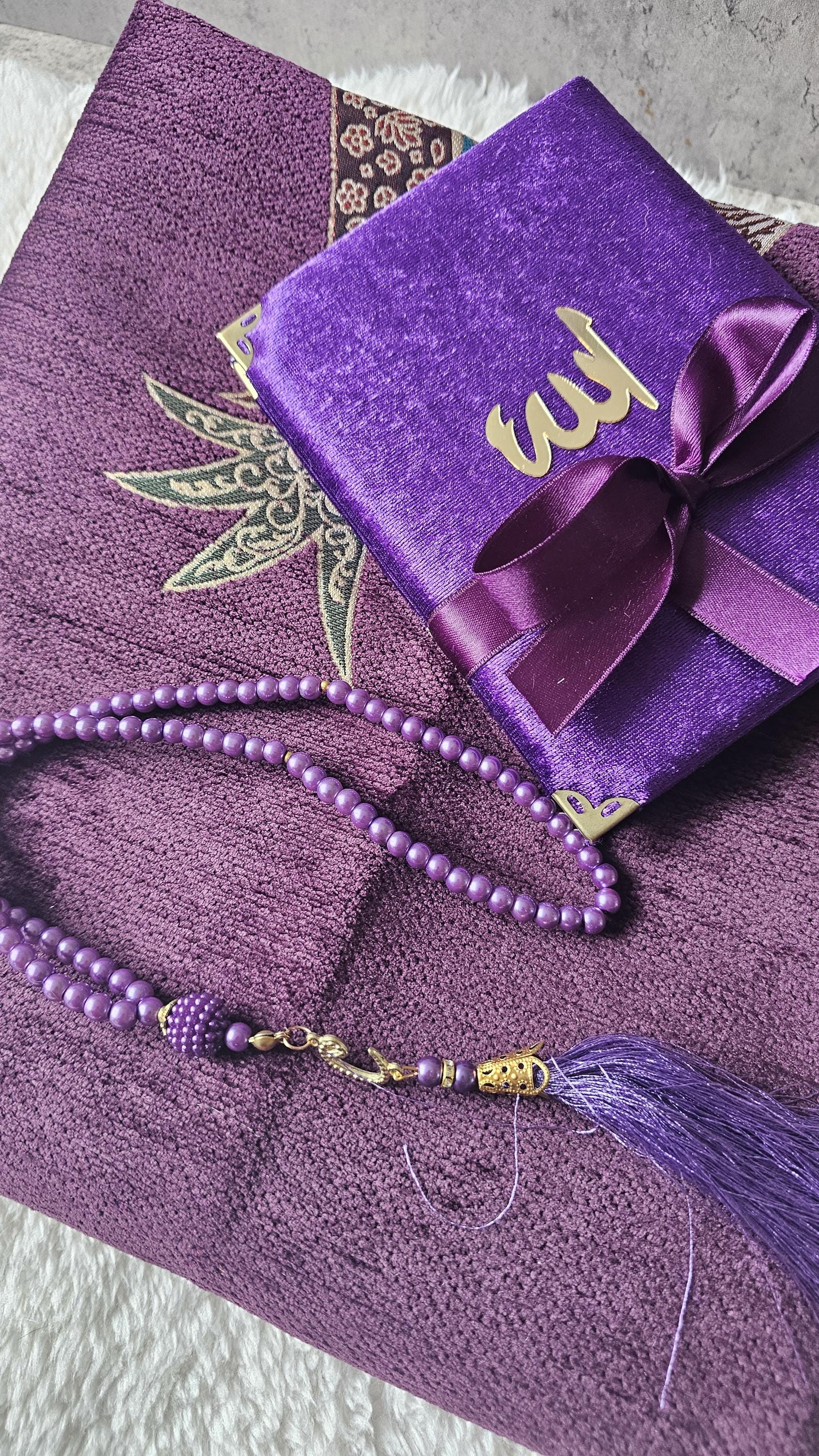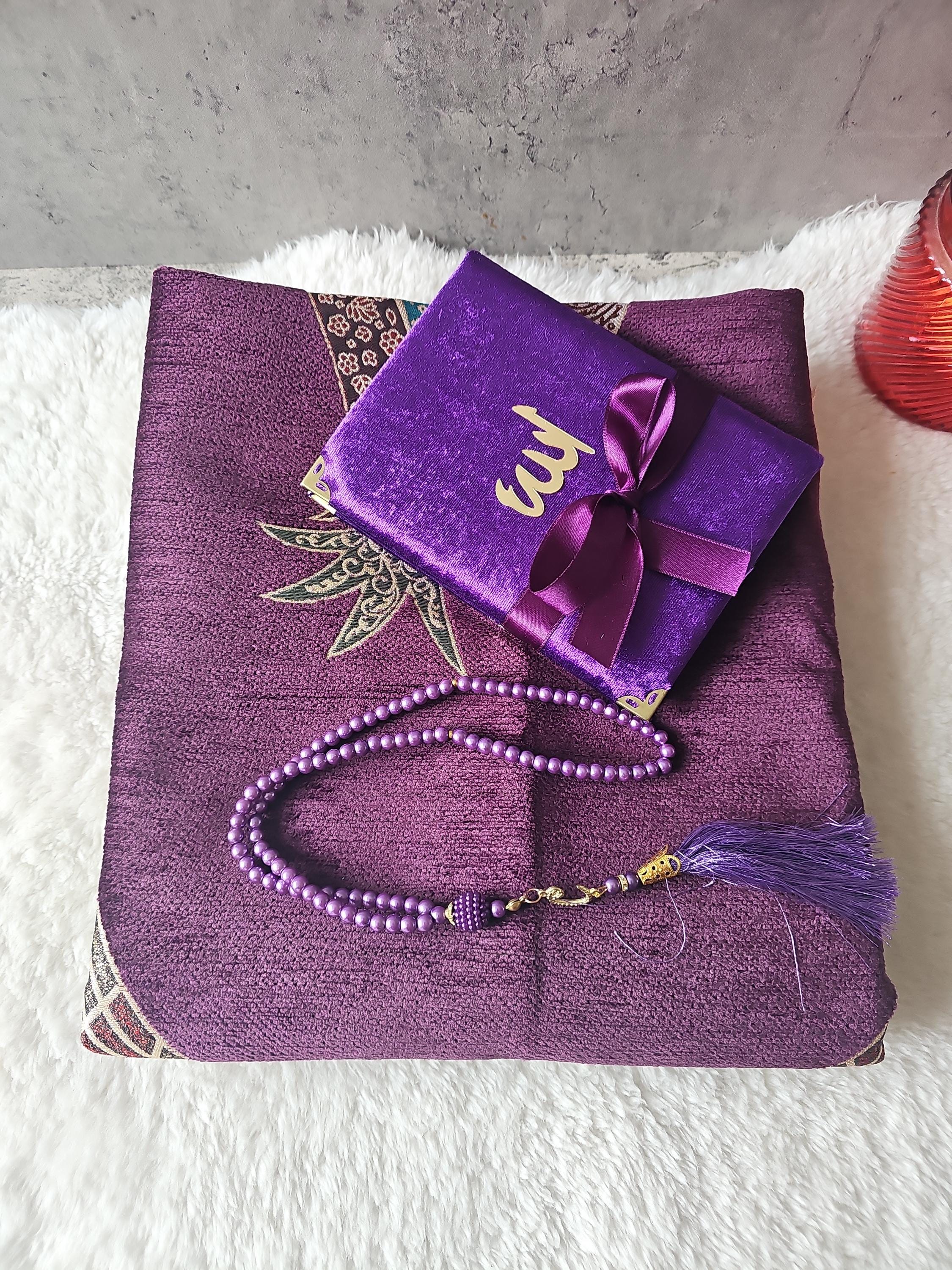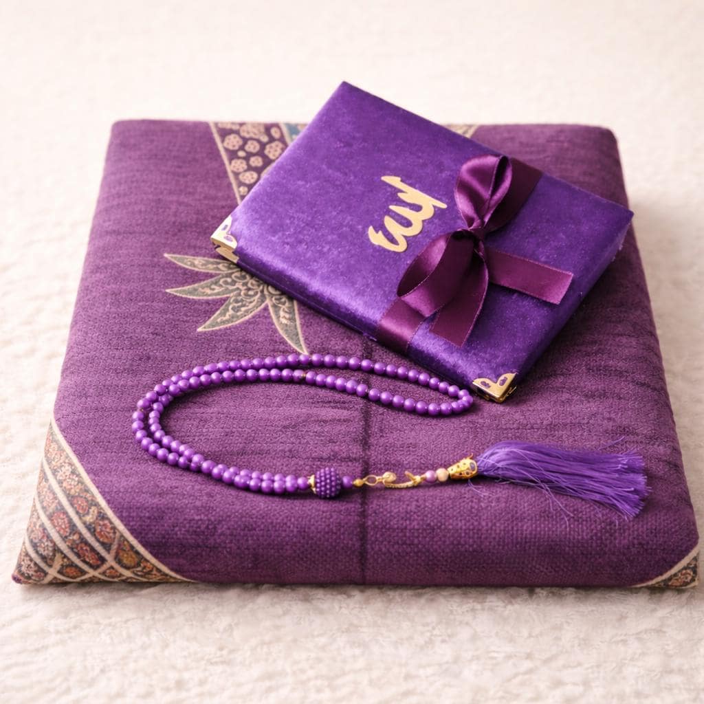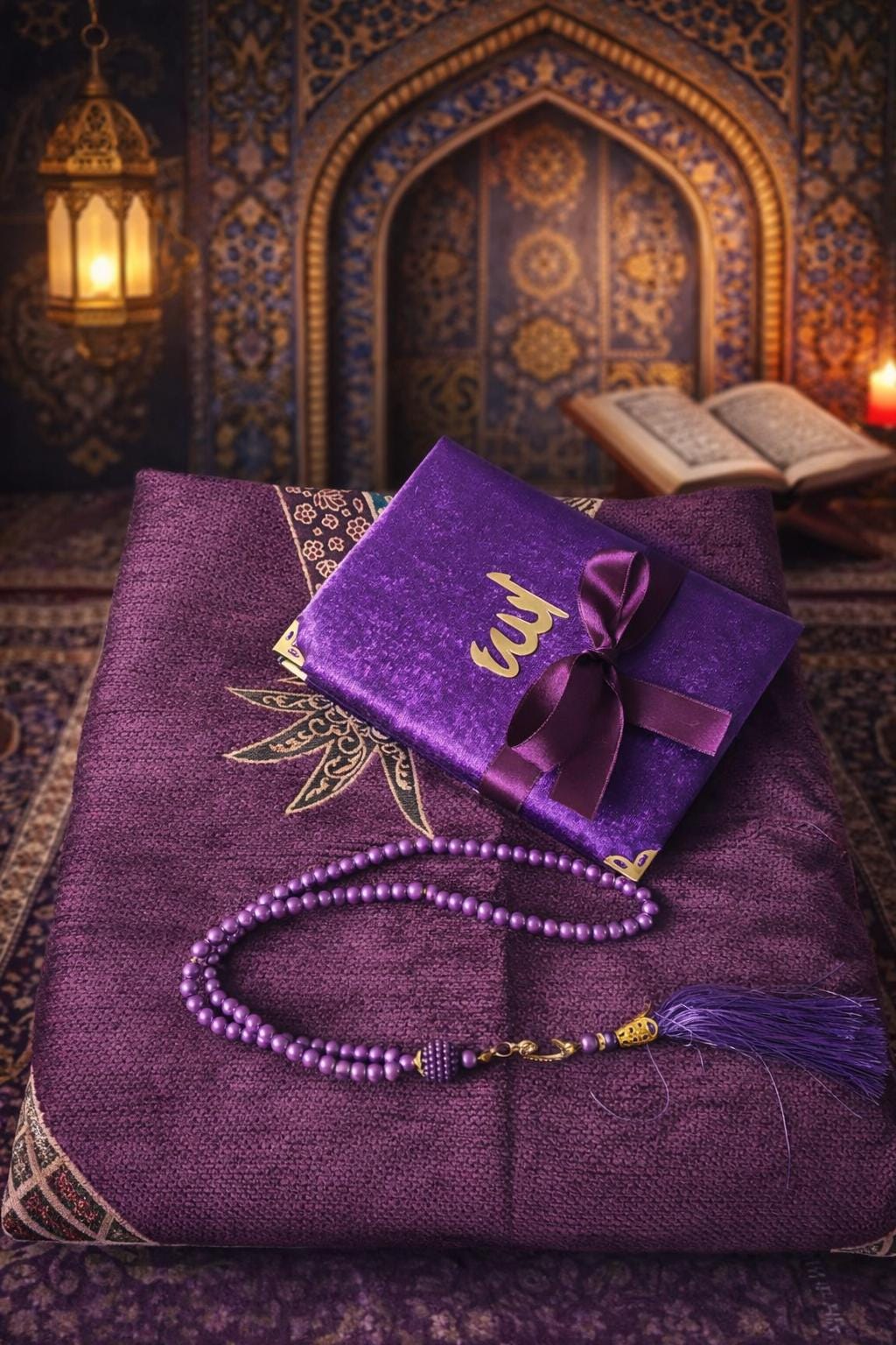 This Purple Velvet Prayer Rug & Quran Gift Set is a beautiful and meaningful gift for your loved ones. Designed in a minimal and premium style, it fits perfectly into modern home decor while offering deep spiritual value.