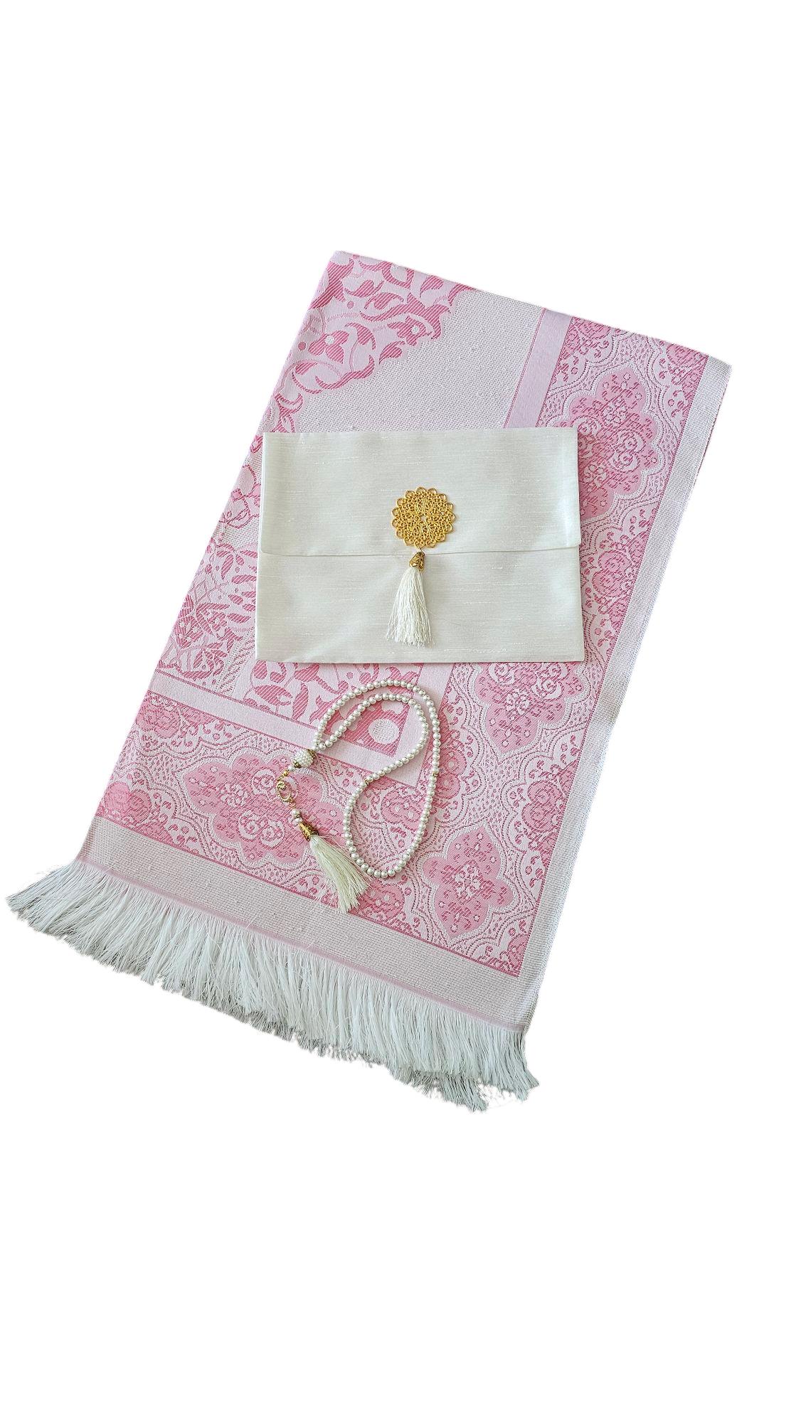 Affordable Islamic His or Her Prayer Rug Pouch Rosary Prayer mat Set, Prayer Rug Sejadah Nikaah Islamic Wedding Anniversary Eid Hajj Umrah