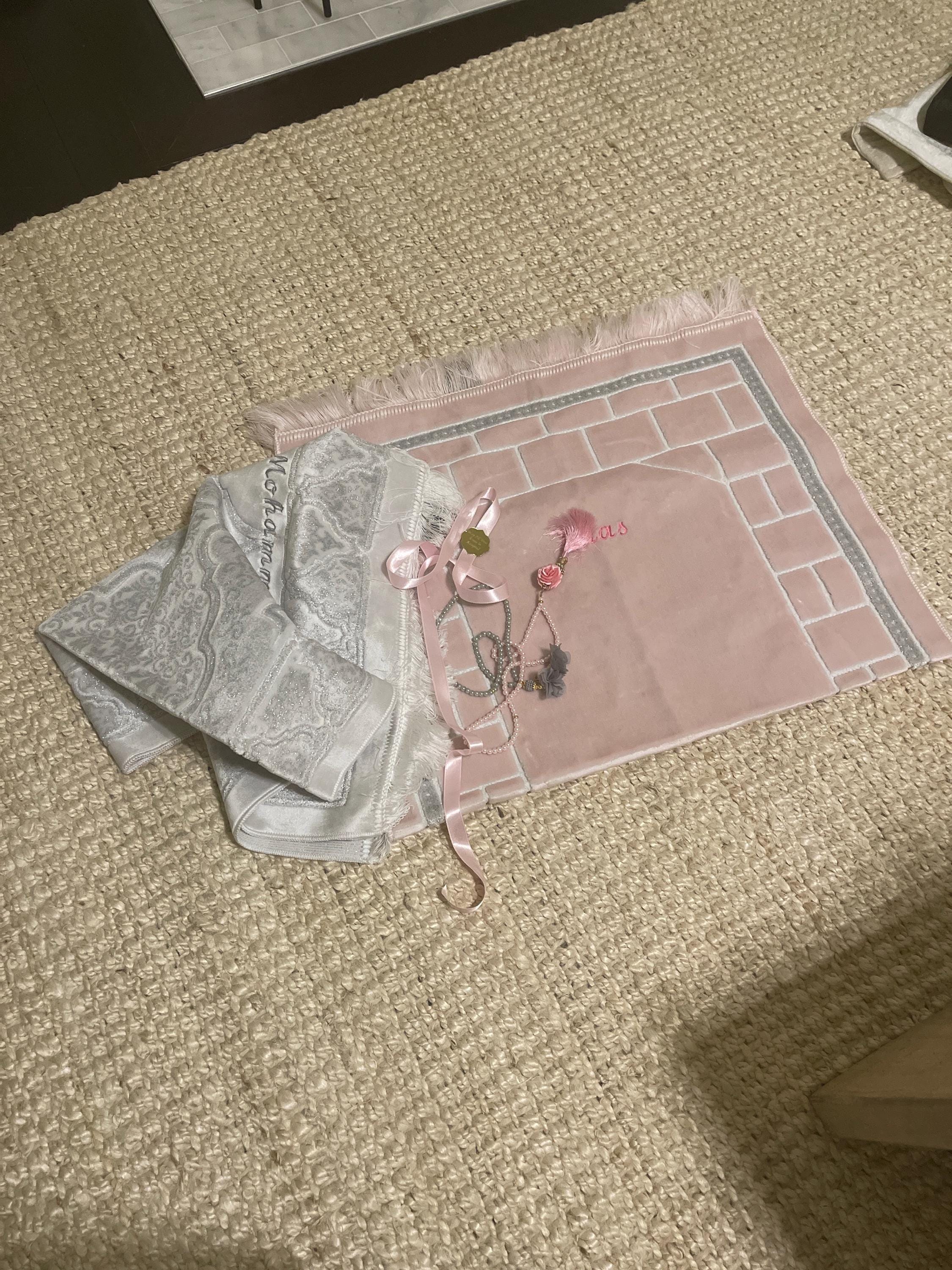 Couples Customized Thick Prayer rug + Tasbeeh Set | Islamic Gift for Eid Anniversary Nikaah Ramadan,Aaliyah gifts | Personalized Couples set